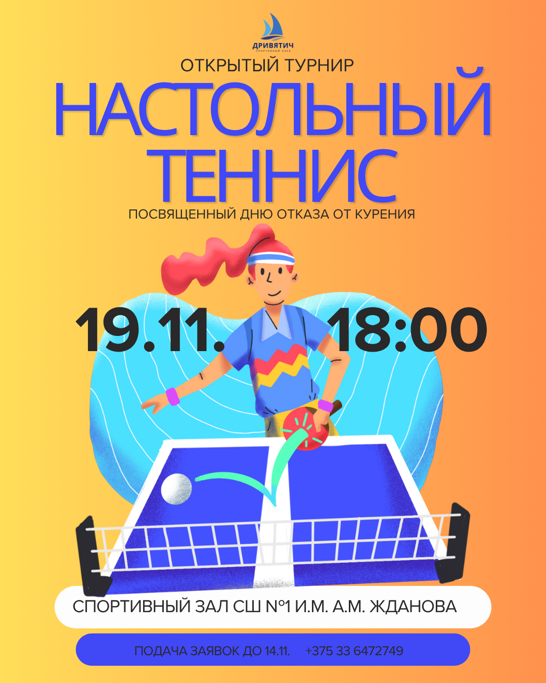 Приглашаем принять участие в открытом турнире по настольному теннису посвященный Дню отказа от курения.